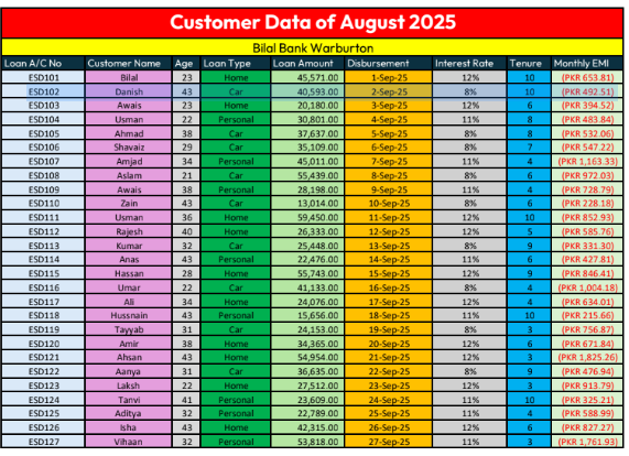 Bank Loan Management Sheet